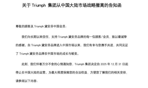 黛安芬关闭中国内地所有门店